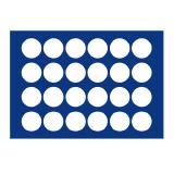 Runde Vertiefungen (für Münzen bis 38 mm Durchmesser), z.B. für 24 x 10€-Münzen in Kapseln.