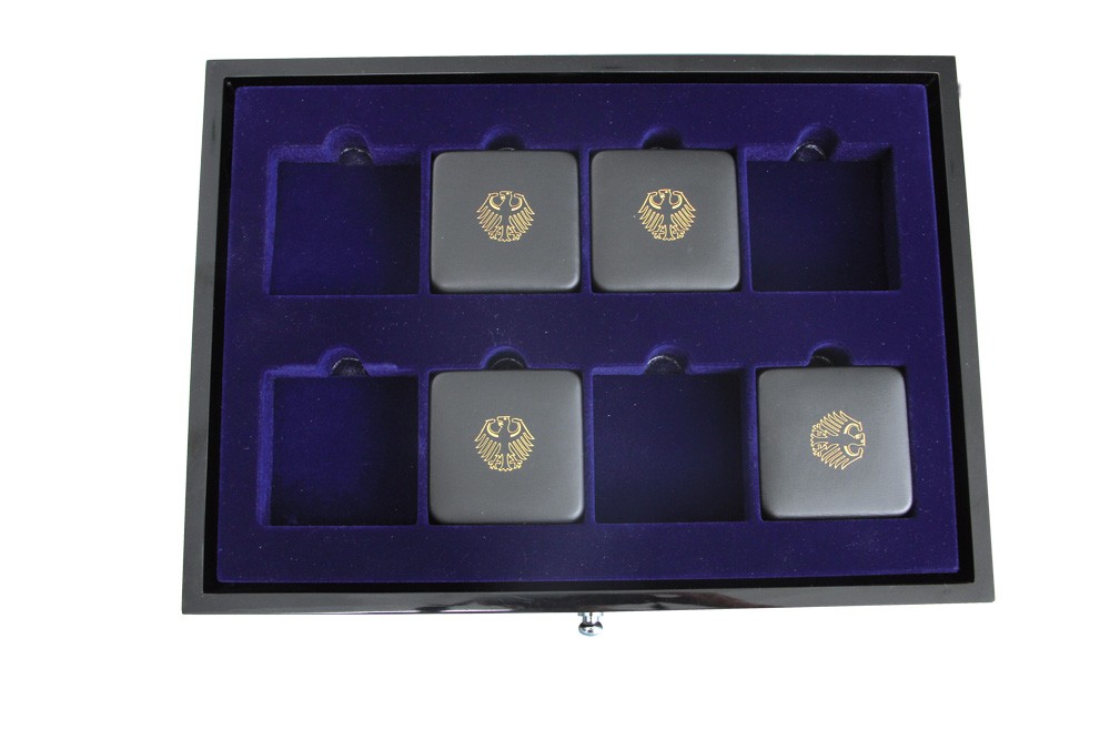 Safe Schublade mit doppelter Höhe für 8 Etuis bis 78x78mm Nr. 5943 z.B. für 100€-Gold-Deutschland. Mit der Verwendung dieser Doppel-Schublade finden anstatt 6 nur noch 4 weißere Münz-Schubladen Platz.