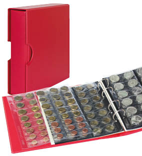 Publica M Münzalbum mit passender Schutzkassette mit 10 glasklaren Münzblättern Farbe weinrot Nr. S3542M-1