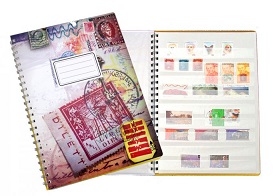 8 Seiten mit weißen Seiten, 8 Pergaminstreifen, Pergamin-Zwischenblätter. Spiralbindung. Titelblatt mit Beschriftungsfeld.
