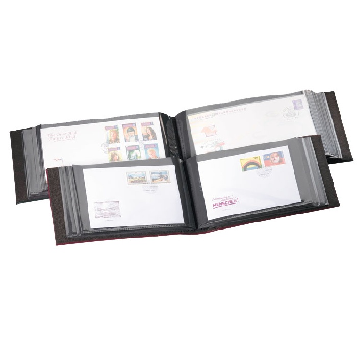 •Hüllen dreiseitig geschlossen, mit dem Rücken verbunden, und von oben zu bestücken. Daher kein Verrutschen der Briefe in den Albenrücken!