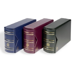 FDC-Alben - Die Hüllen, mit dem nutzbaren Innenmaß von 243 x 133 mm (FDC 4), sind dreiseitig geschlossen, mit dem Rücken verbunden, und von oben zu bestücken. Daher kein Verrutschen der Briefe in den Albenrücken ! Der hochwertige Kunstledereinband ist buchbinderisch verarbeitet und mit einer Steppnaht versehen. Binderformat FDC 4: 280 x 155 mm.
