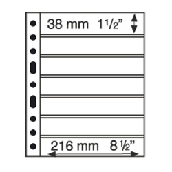 Hochtransparente aufgeschweißte Streifen bieten optimalen Schutz. Diese Hüllen sind von beiden Seiten zu bestücken.Die Folientaschen haben ein Format von B/H 216 x 38 mm. Außenformat: 240 x 312 mm