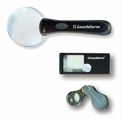 Die randlose Stiellupe mit 3-facher Vergrößerung ermöglicht durch die besonders große Acryllinse (Durchmesser 90 mm) und 2 weißen LED-Lampen das ganzheitliche Betrachten größerer Objekte. Die Präzisionslupe (Linsendurchmesser 21 mm) bietet mit ihrer 10-fachen Vergrößerung und 2 weißen LED-Lampen eine hochauflösende Detailschärfe auch für allerfeinste Details. Die handliche Taschenlupe verfügt gleich über 5 Funktionen in einem Gerät: große Linse mit 2,5-facher Vergrößerung (Linsenmaße 30 x 37 mm), kleine Linse mit 10-facher Vergrößerung (15 mm Ø), UV-Lampe, LED-Taschenlampe und herausziehbarem Kugelschreiber. Aufgrund ihrer kompakten Bauweiße ist sie ideal für unterwegs, z.B. für Messebesuche oder auch zum Einkaufen.