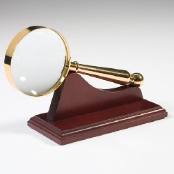 Leuchtturm Vergoldete Lupe mit Holzständer, 4-fache Vergrößerung