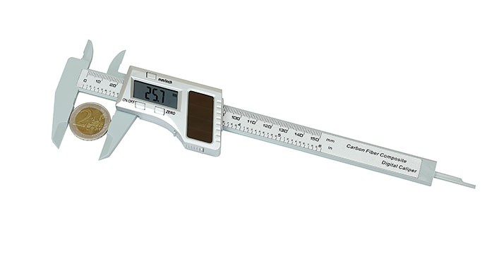 Hochwertiges, digitales Messgerät aus Carbonfaser Verbundstoff mit vielfältigen Funktionen und LCD-Anzeige. Nullstellung in jeder Messstellung möglich. Dadurch werden Differenzmessungen ermöglicht. Funktion zur Messung von Tiefen und Innendurchmessern. Umschaltbar von mm auf Zoll.