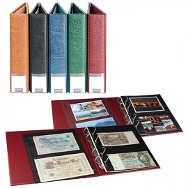 LINDNER Luxus-Sammelalbum für Banknoten/Postkarten mit 20 geteilten, beidseitig bestückbaren Folienblättern Nr. S3570PB+ Farbe