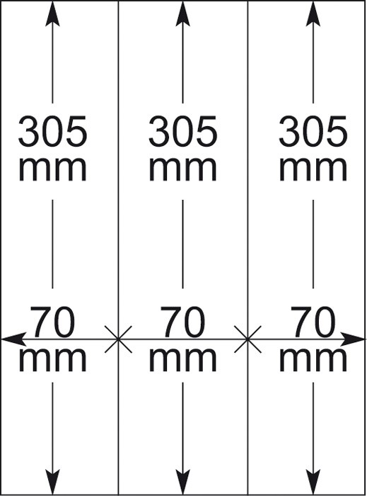 Format: 272x305mmNutzformat: 3 Streifen senkrecht für Rollenmarken 305mmsenkrecht geschweißt