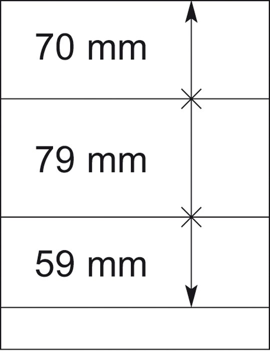Folienhüllen der beliebtesten LINDNER-T Blanko-Blattvarianten mit bereits angebrachtem Selbstklebestreifen am linken Rand.