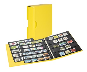 Publica M Color Briefmarkenalbum Solino gelb mit passender Schutzkassette Nr. S3542B-9 Mit 10 beidseitig bestückbaren Folien-Einsteckblättern in 2 Varianten.