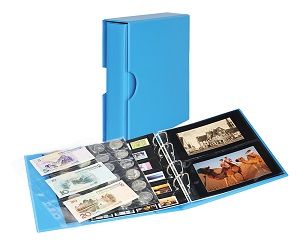 Publica M Color Fotoalbum/PostkartenNautic blau mit passender Schutzkassette Nr. S3542PK-Mit 10 geteilten, beidseitigbestückbaren Folienblättern.
