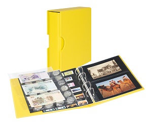 Publica M Color Fotoalbum/Postkarten Solino gelb mit passender Schutzkassette Nr. S3542PK-9Mit 10 geteilten, beidseitigbestückbaren Folienblättern.