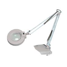 Mit großer Lupe (Durchmesser 120 mm) und kreisförmiger, aufwendiger Beleuchtung (22W) ringförmig um die Lupe.