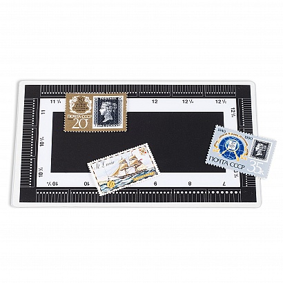 Zähnungsschlüssel zur Bestimmung der Zähnung von Briefmarken. Dazu einfach die Briefmarke an die jeweilige Skala anlegen, bis die einzelnen Zahnspitzen exakt